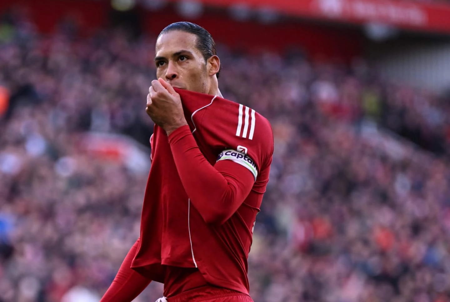В середине первого тайма нидерландский защитник «красных» Вирджил ван Дейк удваивает превосходство команды хозяев, отличившись голом на 24-й минуте, в концовке аргентинский полузащитник Алексис Макаллистер доводит счет в поединке до разгромного, отметившись голом на 43-й минуте.