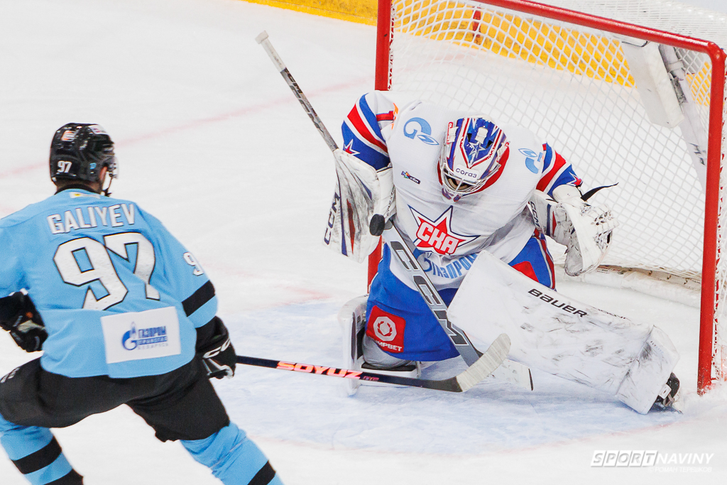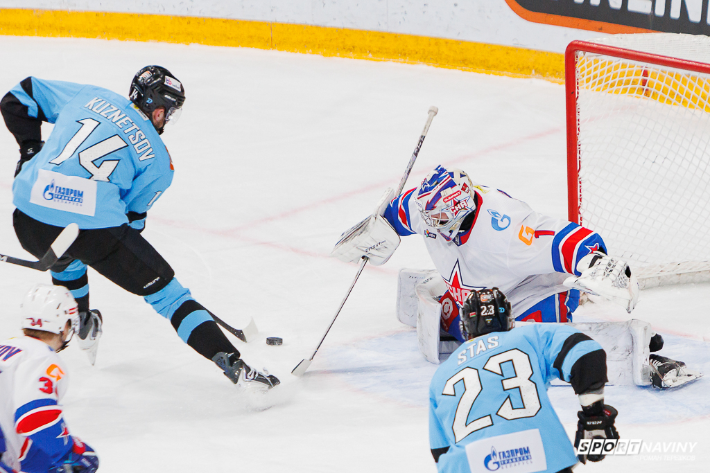 Счет в матче открыл нападающий питерского СКА Николай Голдобин, поразивший ворота российского голкипера белорусского клуба Василия Демченко на 6-й минуте.
